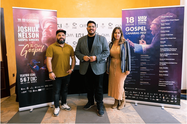 El pasado lunes 27 de noviembre tuvo lugar en el Teatro Leal de La Laguna la rueda de prensa en la que se presentó el Festival Gospel de Canarias de este año 2023. En dicho acto estuvo presente nuestro director Ezequiel Barrios junto a Xenox Producciones y el representante del Ayto. de La Laguna. En ella tuvo la oportunidad de hablar y dar valor a la parte formativa de este festival en el que la Escuela Gospel de Canarias está poniendo su grano de arena. Ya es conocido que el plato fuerte de formación ha sido Canarias Gospel Summit 23 que llevamos a cabo el pasado octubre, pero también realizaremos otras actividades como son talleres en centros educativos y centros de mayores, así como el Taller de Gospel para niños que se llevará a cabo en Lanzarote.